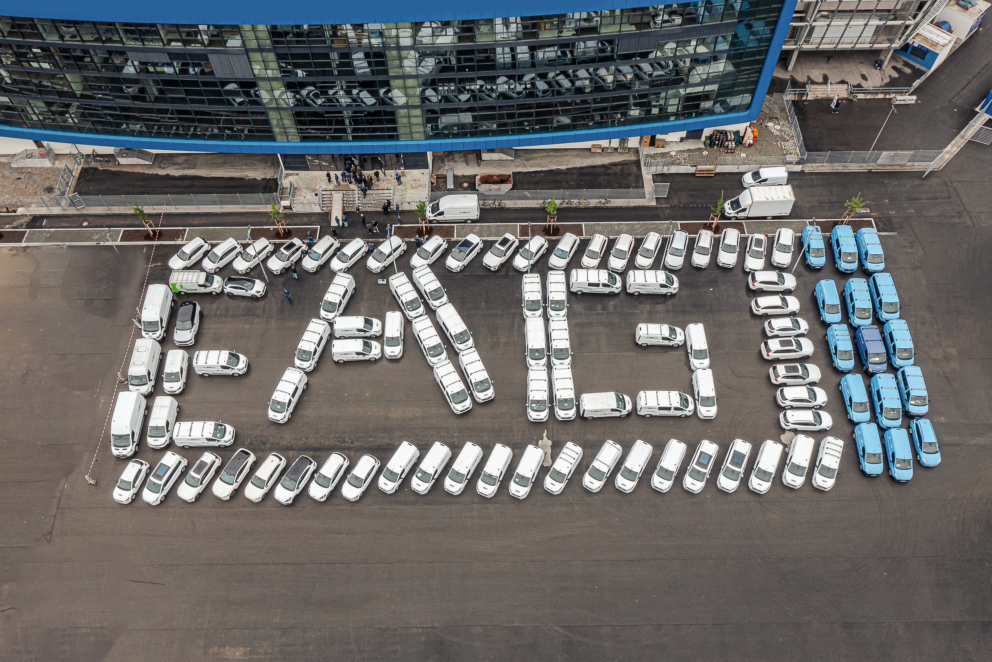 Parkkünste und Koordination waren auch gefragt - das Ergebnis: Unser Fuhrpark als "EAG"-Logo